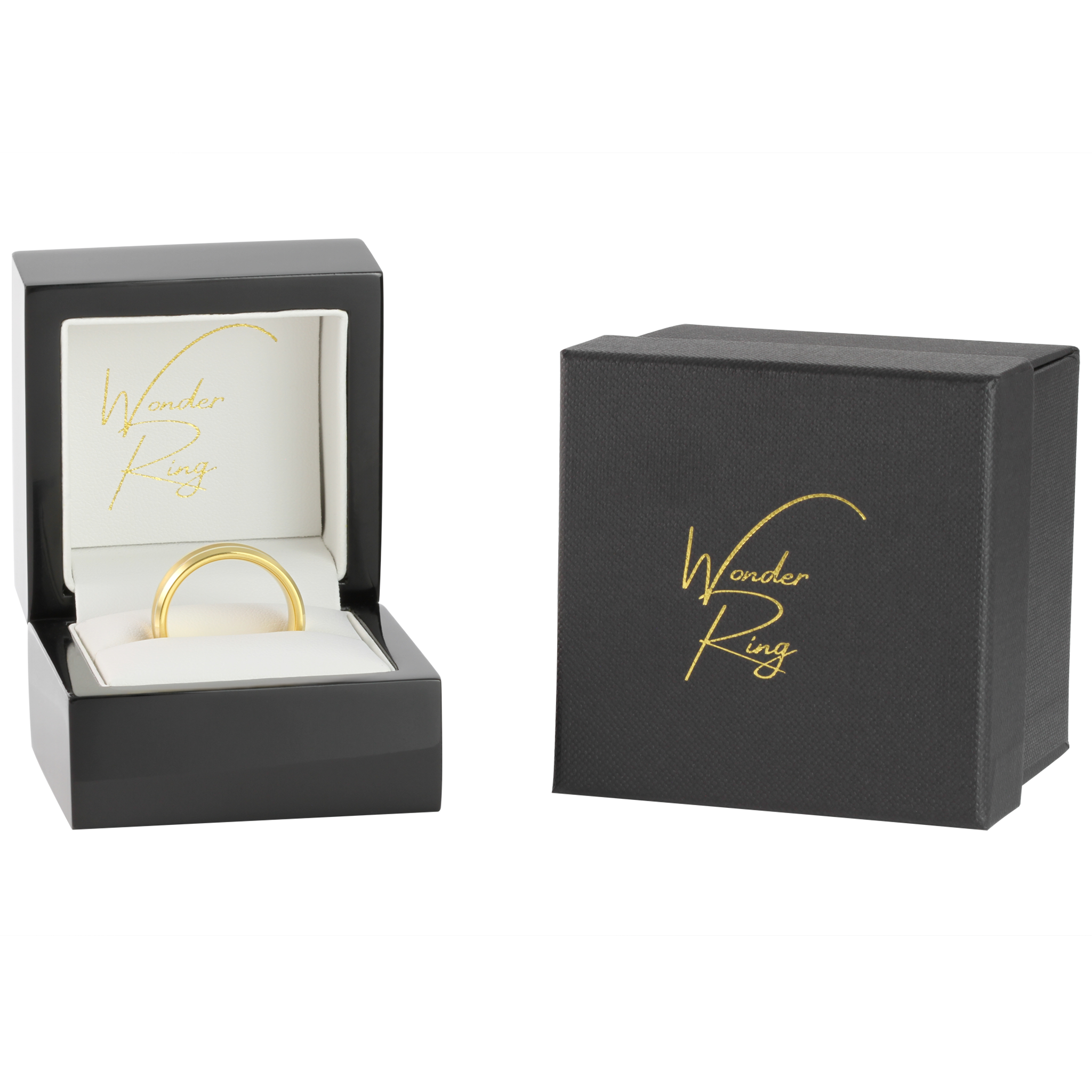 The Brushed Wonder ring has a flat exterior and a wide brushed centre line. This ring has bevelled edges on either side and the same comfort-fit interior as the other Wonder Rings in the collection. This is the Gold Plated version of the Brushed Wonder ring.
