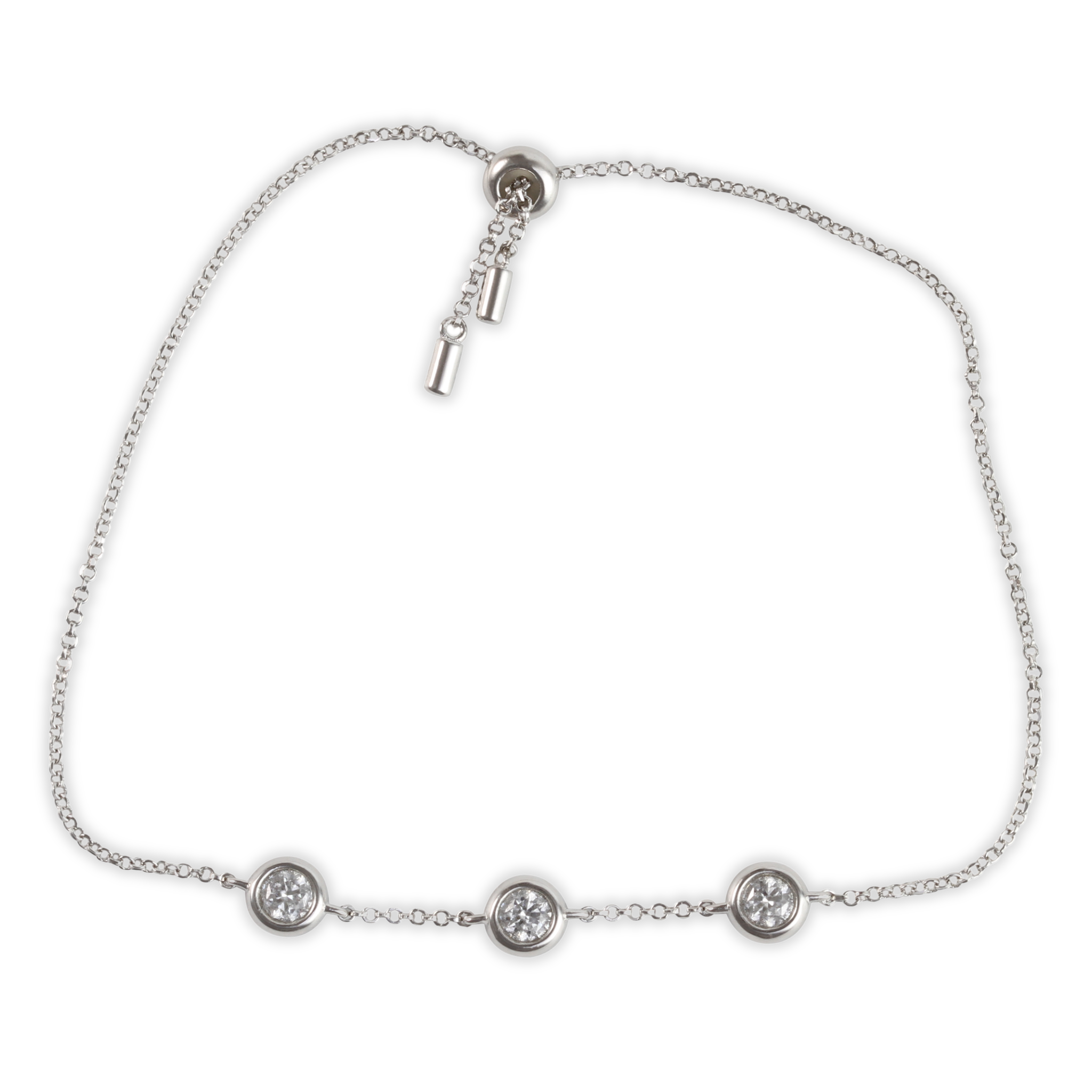 Experience the thrill of wearing a diamond bracelet - at a fraction of the price. Our premium grade Moissanite stones are impossible to tell apart from real diamond. This stunning chain bracelet features three round sparkling stones, enclosed in a protective silver enclosure.