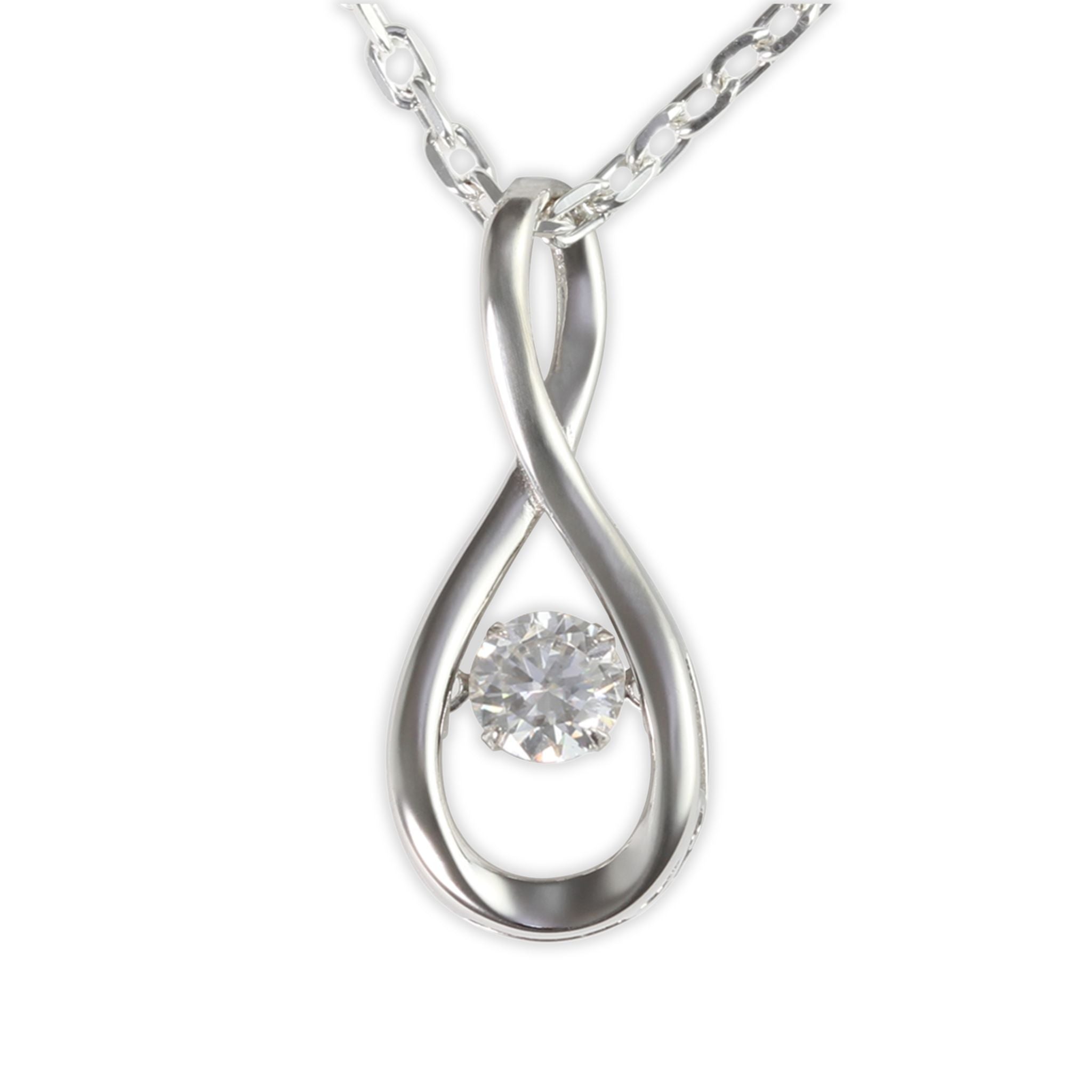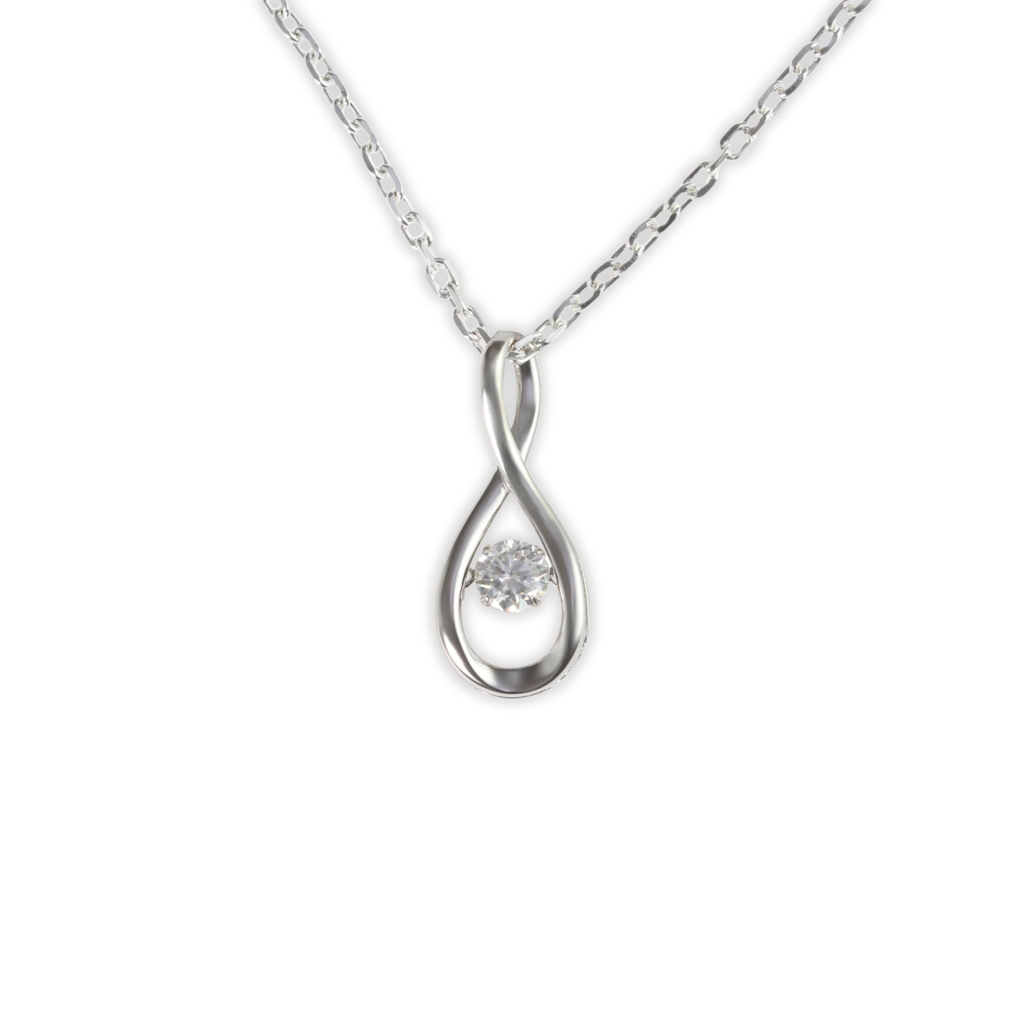 Experience the thrill of wearing a diamond necklace - at a fraction of the price. Our premium grade Moissanite stones are impossible to tell apart from real diamond. This pendant features a stunning, infinity symbol design with an integral 0.5ct Stone.