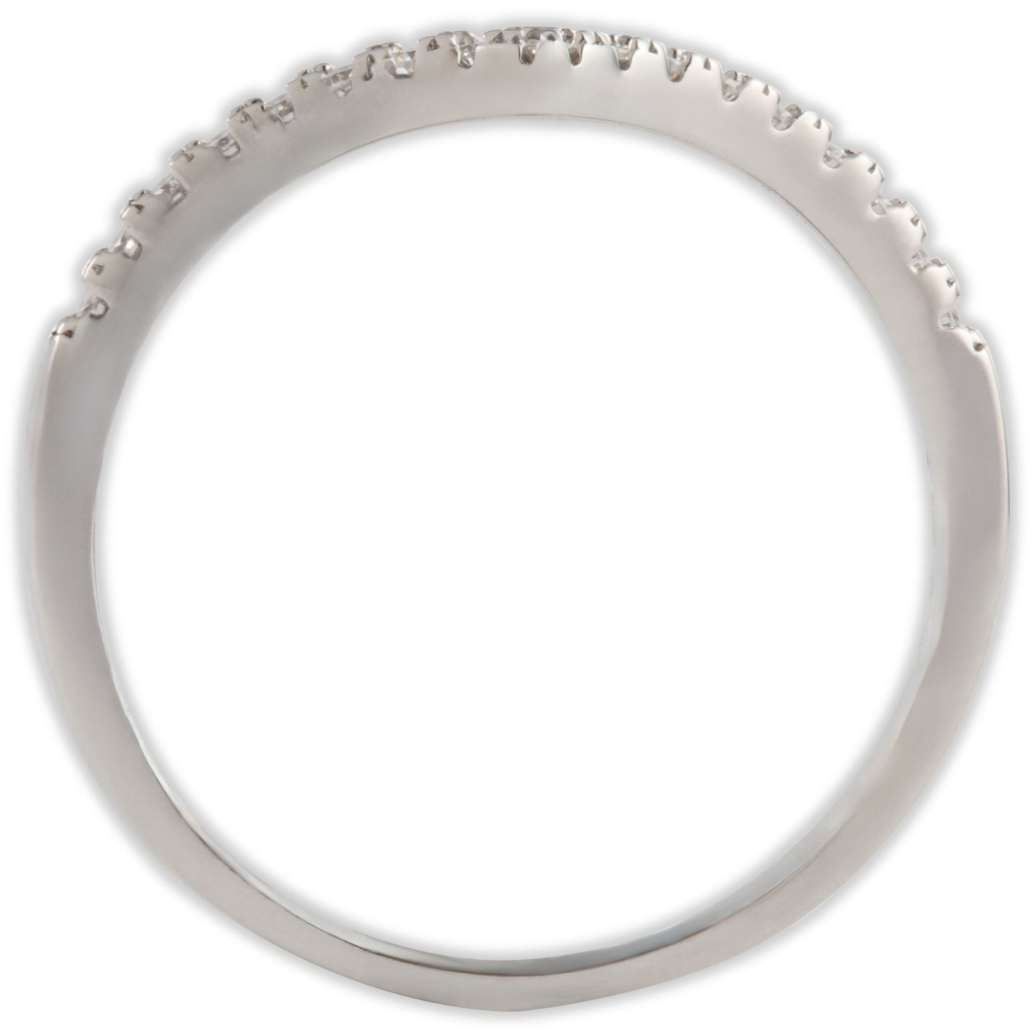 Experience the thrill of wearing a diamond ring - at a fraction of the price. Our premium grade Moissanite stones are impossible to tell apart from real diamond. This ring has a wishbone shape and features a string of sparkling stones.