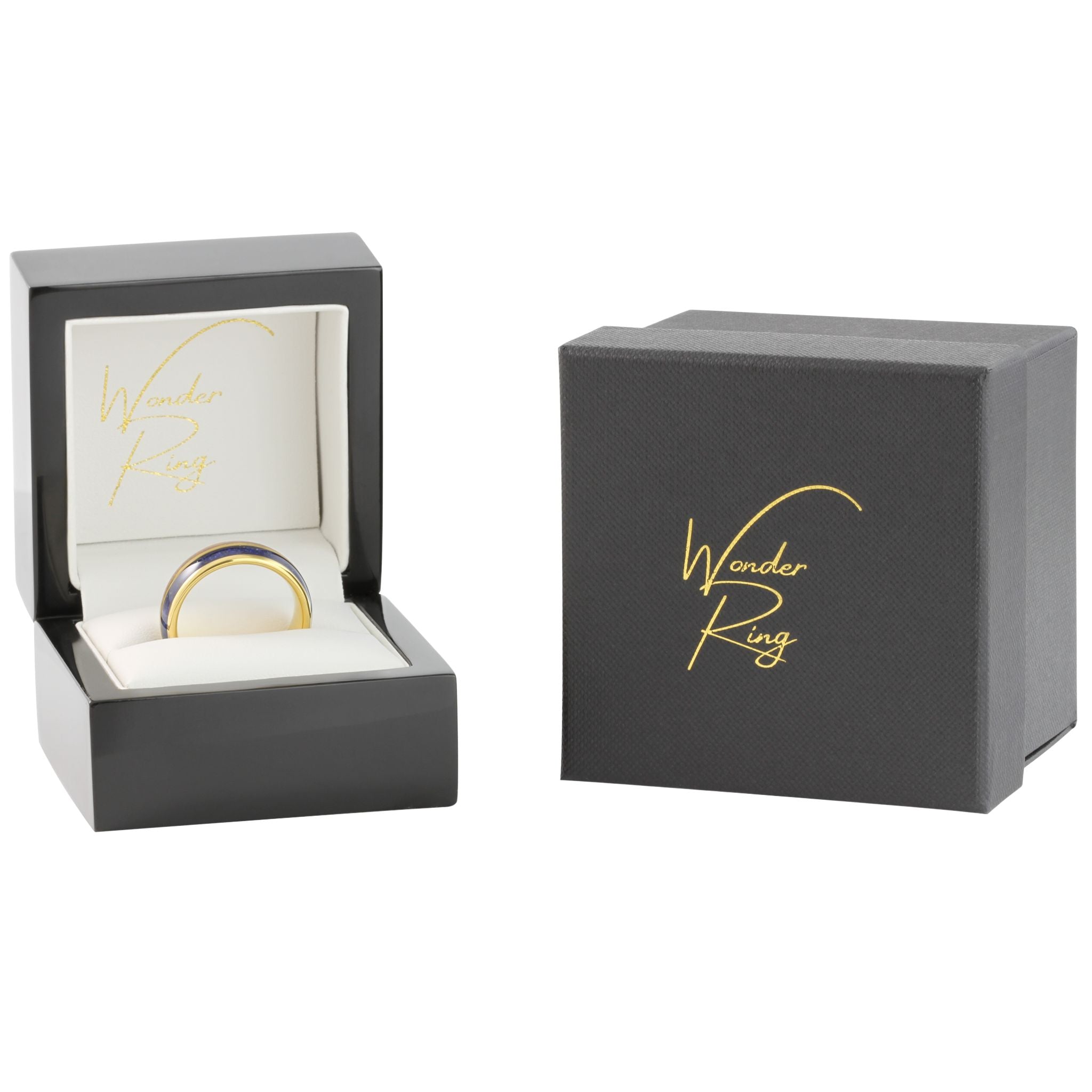 The Golden Blue Wonder ring features a split design of Wood and deep Blue Opal, surrounded with an 18ct Gold plated finish.