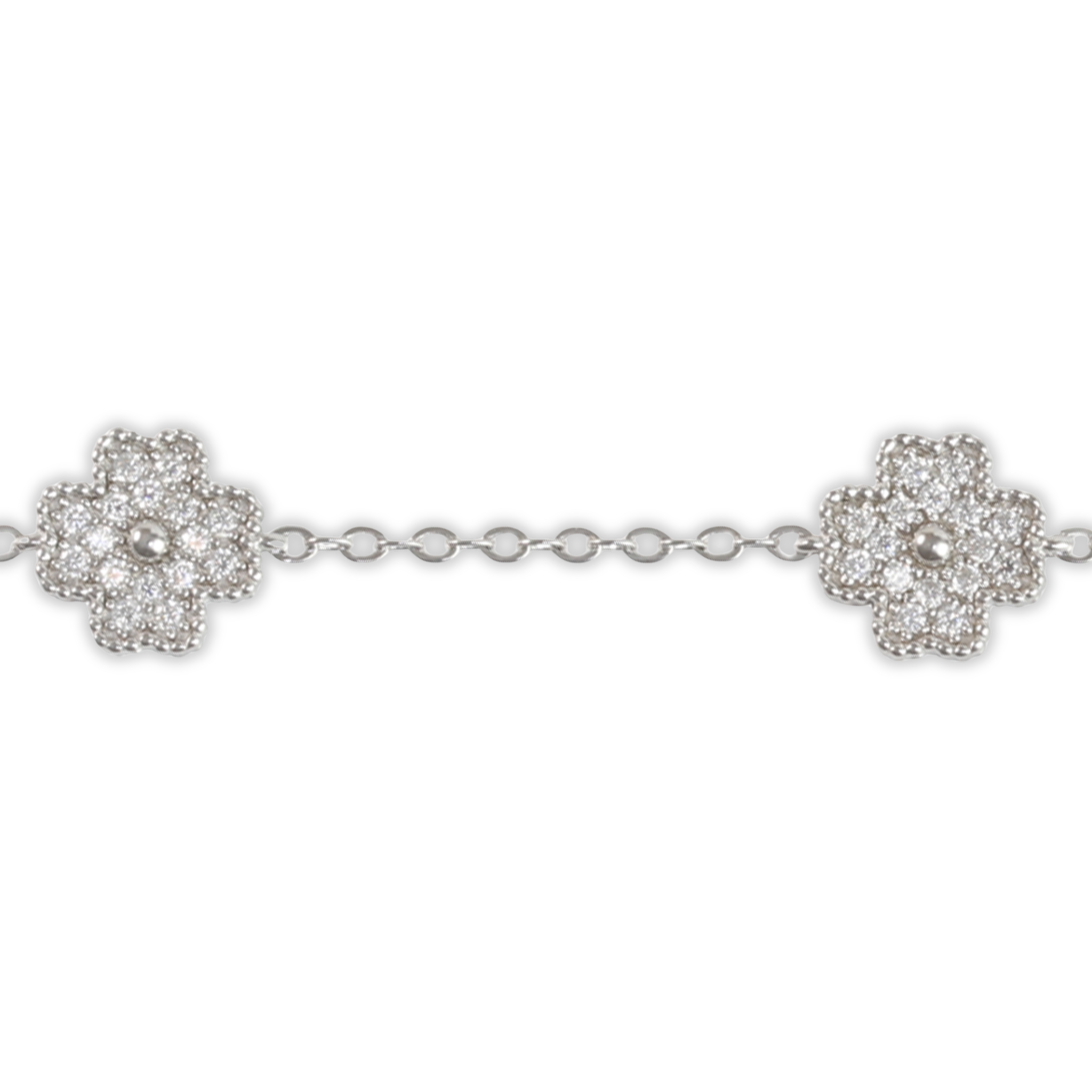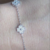 Experience the thrill of wearing a diamond bracelet - at a fraction of the price. Our premium grade Moissanite stones are impossible to tell apart from real diamond. This stunning chain bracelet features five individual shimmering four leaf clovers.