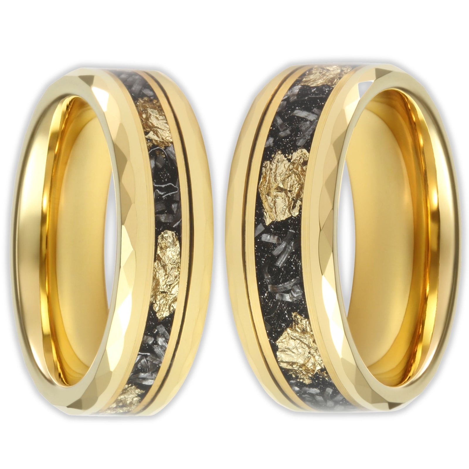 Thisgold tungsten wedding ring set for men and women is subtle but effective. The brushed finish and simple design of the bands give them a classic, understated look that is perfect for couples who want a symbol of their commitment that will stand the test of time.