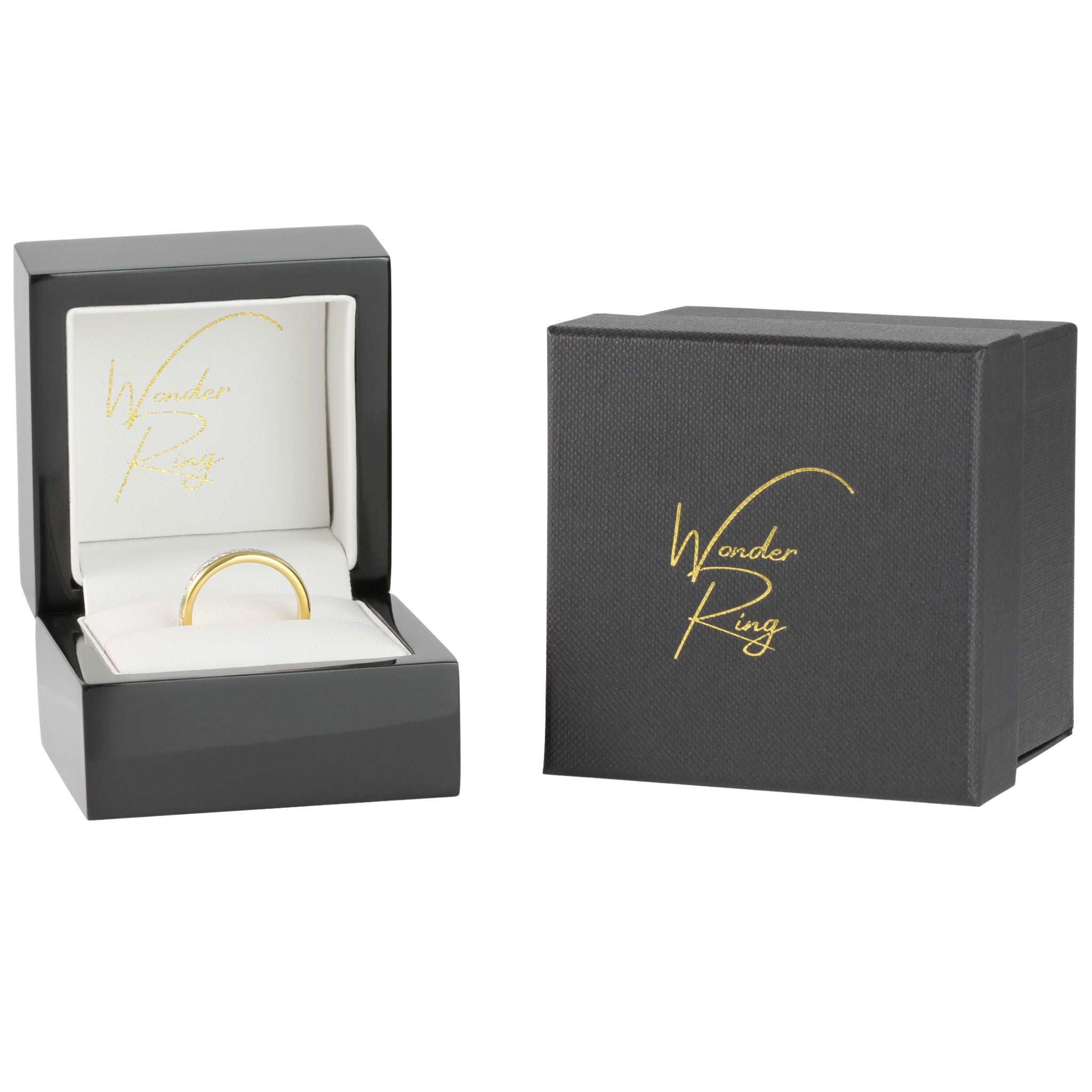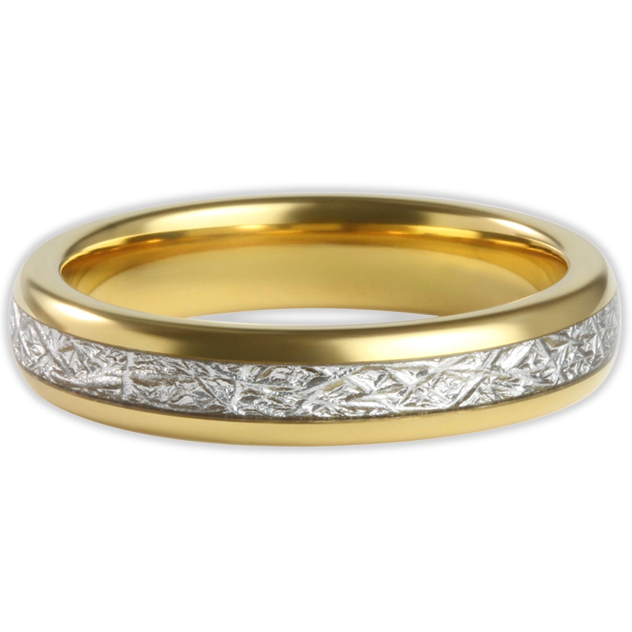 The Golden Steel Wonder Ring is based on the Gold Wonder Ring and features a central band of sparkling Stainless Steel strands. The ring is 4mm wide and has a highly polished domed exterior.