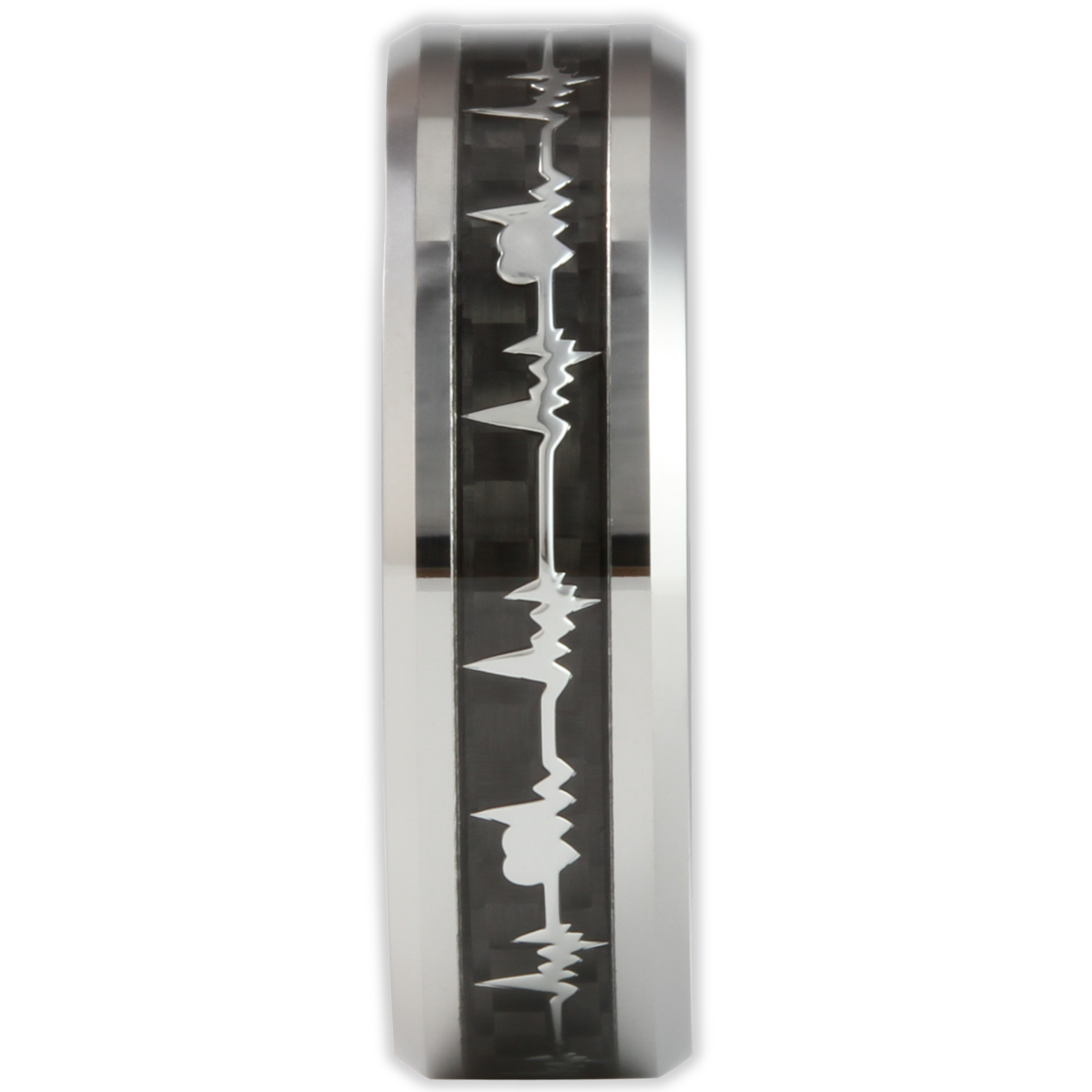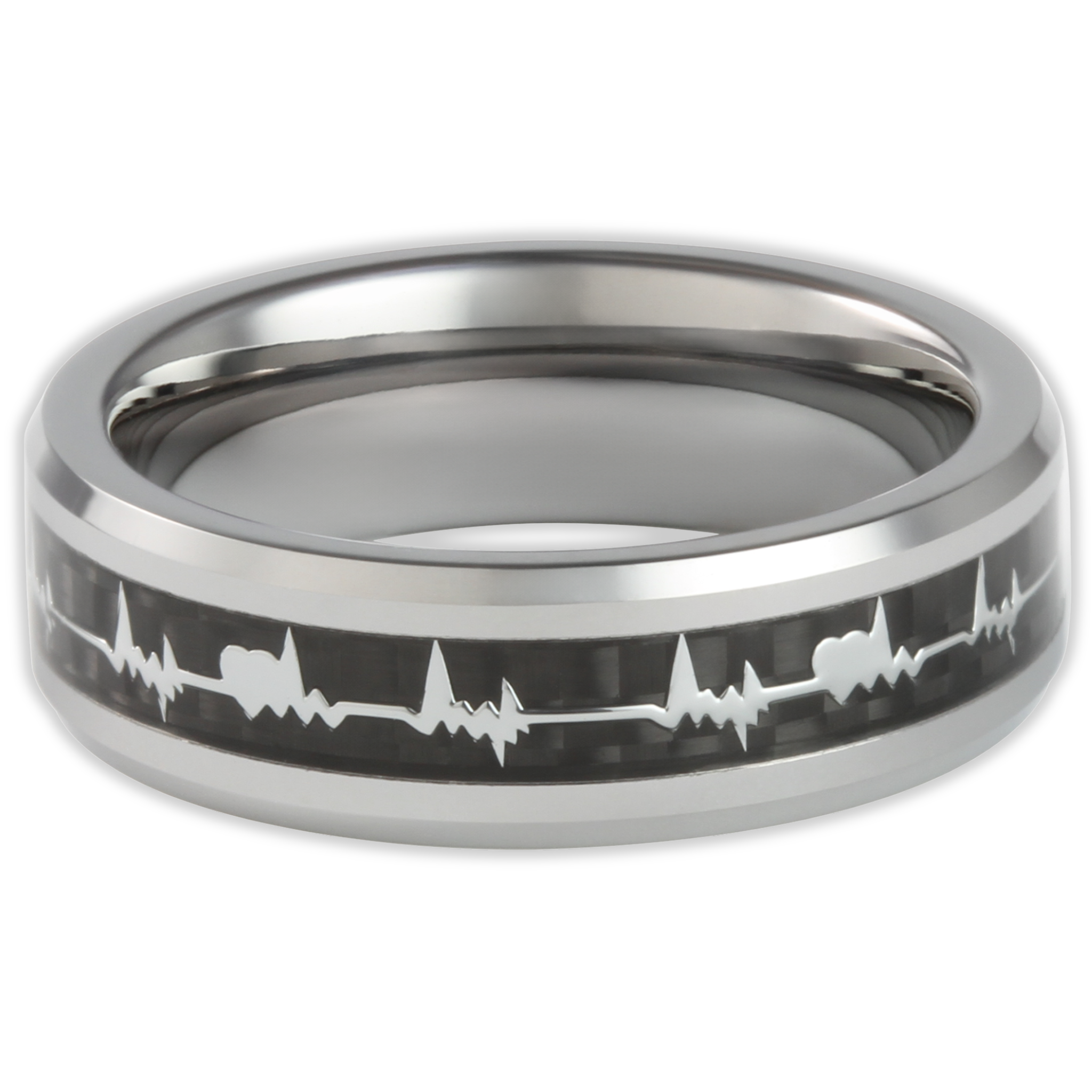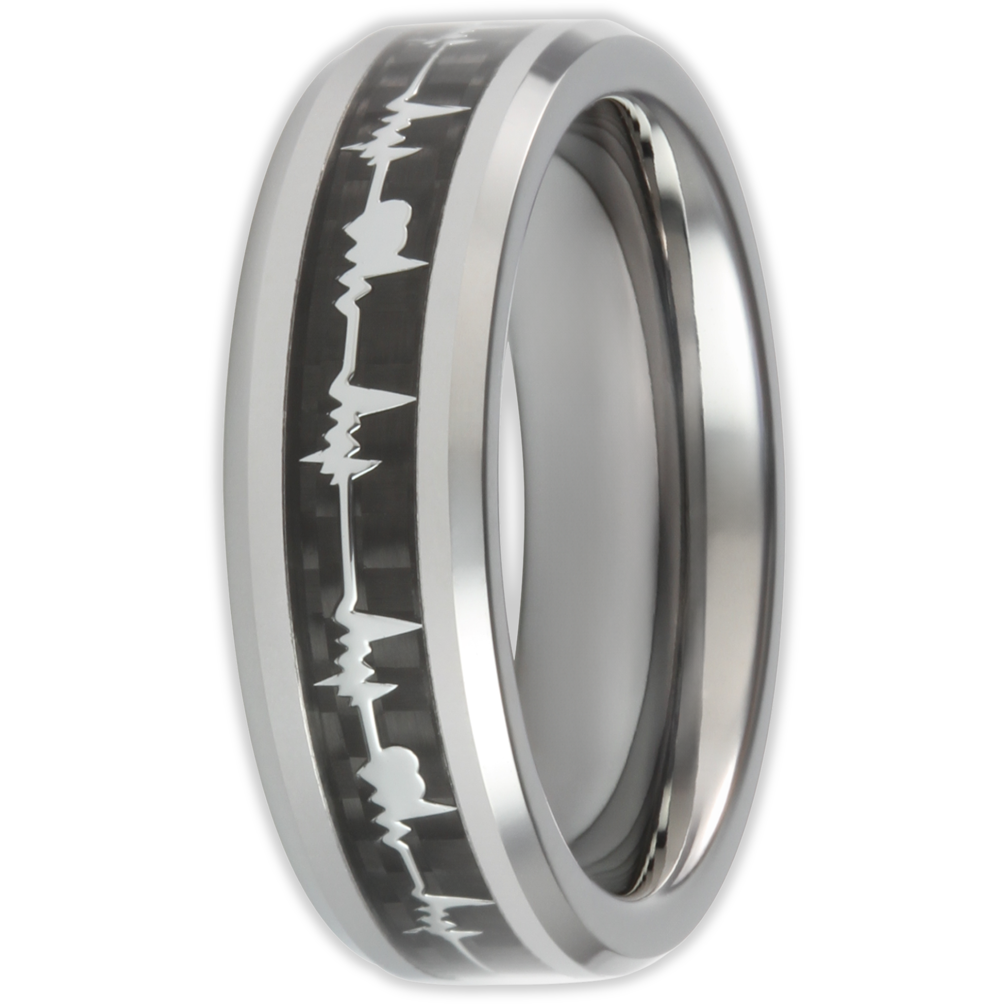 Show how much your heart yearns for that special someone with a heartbeat they can wear every day. The contrast between the highly polished tungsten ring and the dark inlay makes the heartbeat design really stand out and shine.