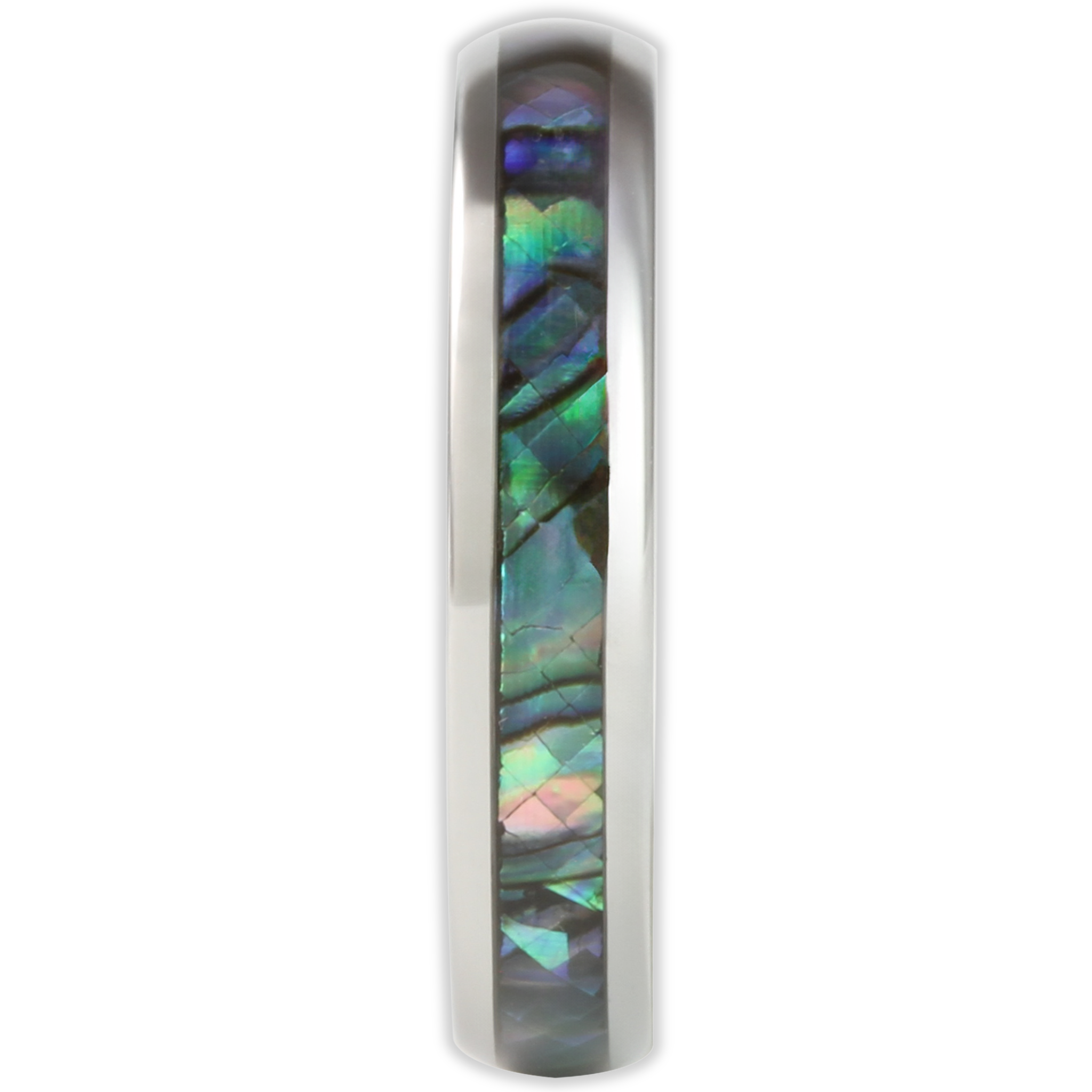 The beautiful iridescent finish on this ring is mesmerising. The colours and shapes change as you move the ring around your finger and it reacts to the light. Green, blue, yellow, purple and even spots of orange are revealed to the eye,