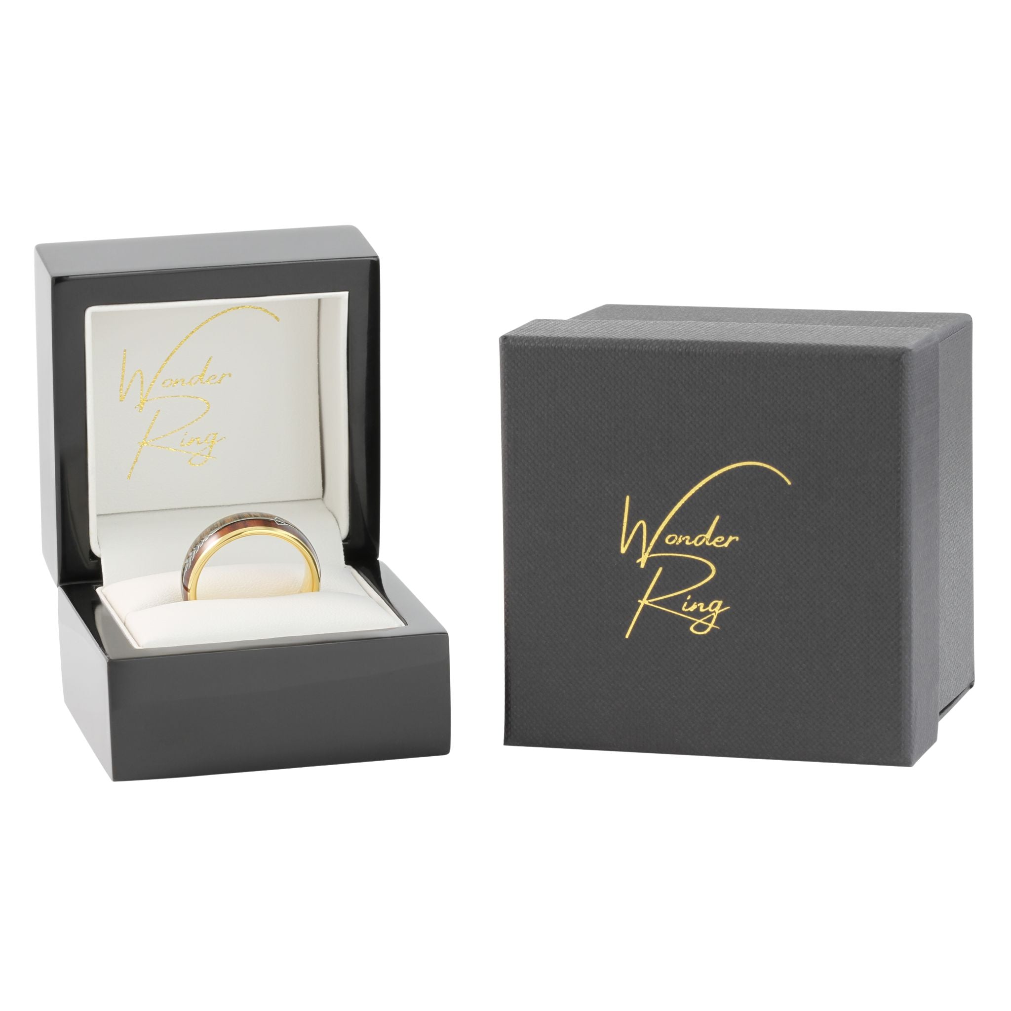 The ring is 8mm wide and available in four finishes; Original, Gold, Rose Gold and Black. Supplied in a beautiful gloss wooden branded ring box.