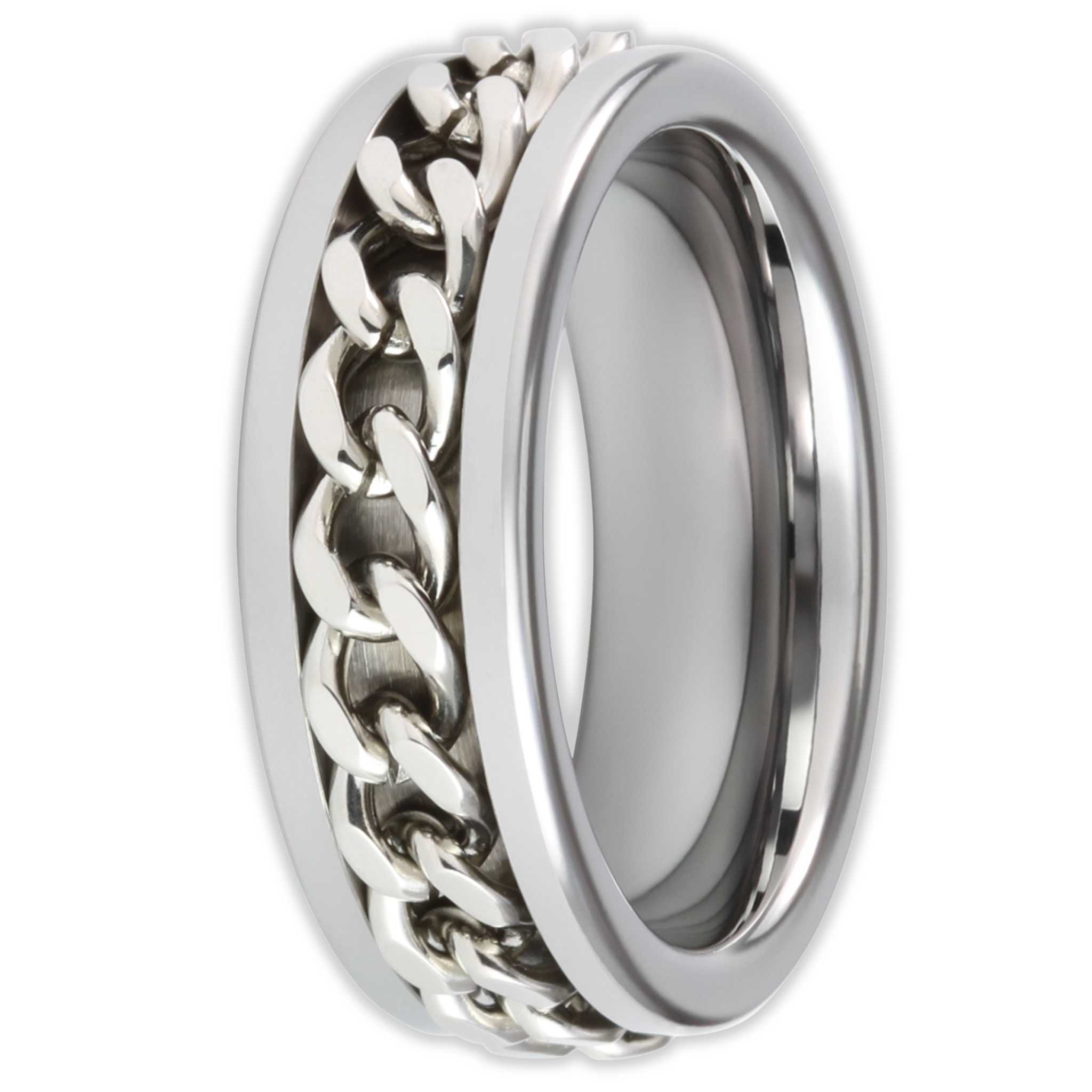 The Rotating Chain Wonder Ring is the answer !  The ring is made from the same hard wearing material as our Original Wonder ring. With the added bonus of a stainless steel chain that spins !